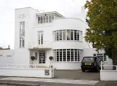 Art deco homes were built in South Africa between 1925 and 1935. They were also built in other British colonies such as Australia, New Zealand, and British India. Art deco architecture uses various building materials, such as glass, concrete, stone, and wood. The shapes of art deco buildings are often very decorative with curved shapes, ornate roofs, and gables. Art deco buildings are to be seen in most parts of a city, including a waterfront, a park, or on a busy main street.