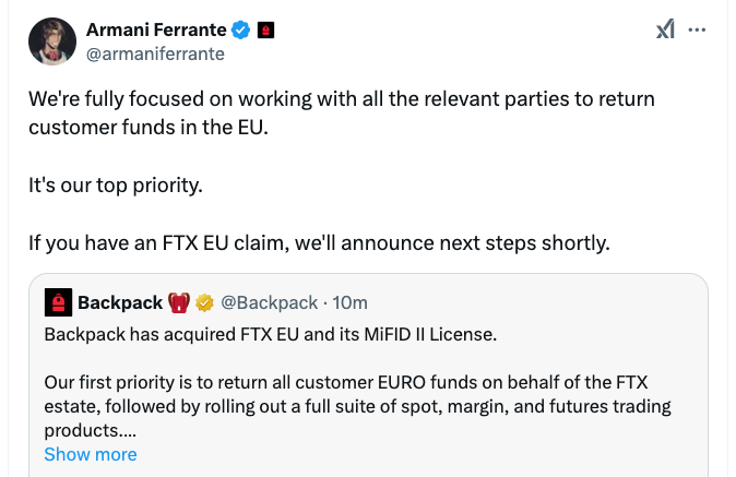 A significant aspect of the deal involves Backpack EU managing the distribution of funds to FTX EU customers as part of the court-approved bankruptcy claims process. This step underscores the company’s commitment to addressing the fallout from FTX’s collapse and restoring customer trust.