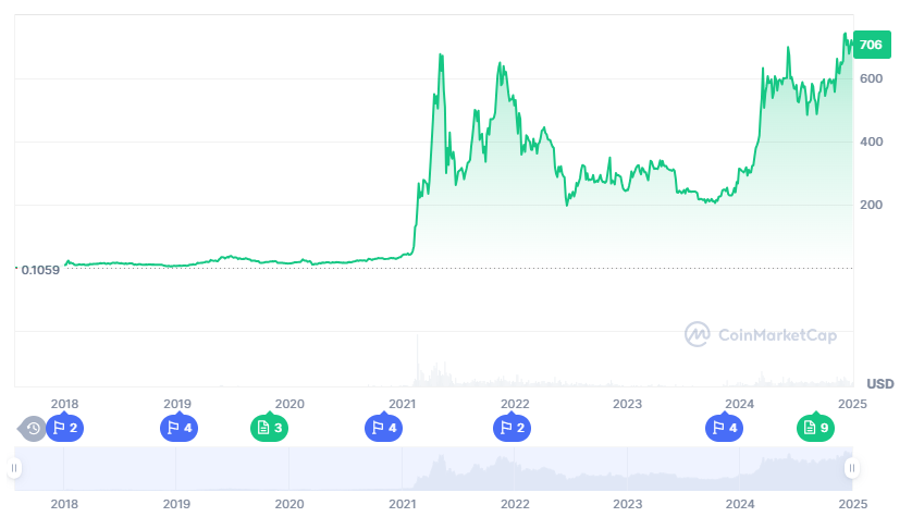 Binance Coin (BNB) continues to capture the attention of crypto investors as its price demonstrates resilience and potential for long-term growth. Currently trading at $693.8, BNB has shown recovery following notable market shifts, including leadership changes at Binance and increased regulatory scrutiny. With predictions of a bull run on the horizon, is BNB poised for exponential growth?