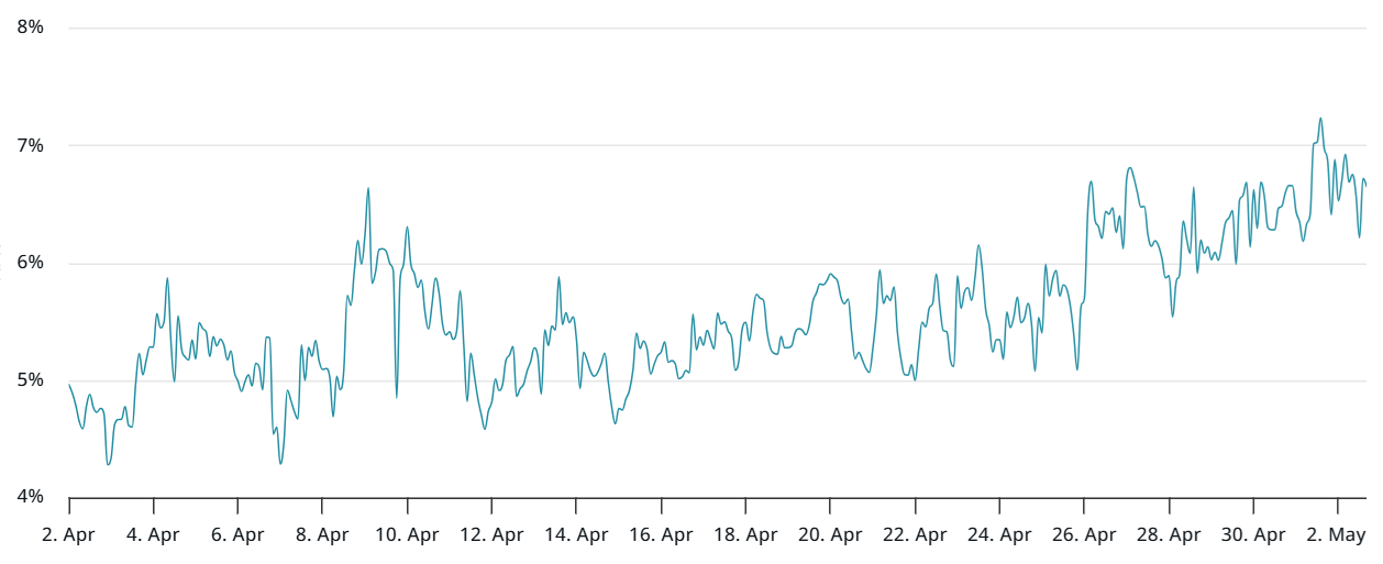 In contrast, the Bitcoin options market shows that large players and market makers are beginning to bet on a breakout. The 25% delta skew—a gauge of whether investors favor calls or puts—is now near its lowest level since mid-February. That’s a strong signal that big money sees more upside potential than downside risk.