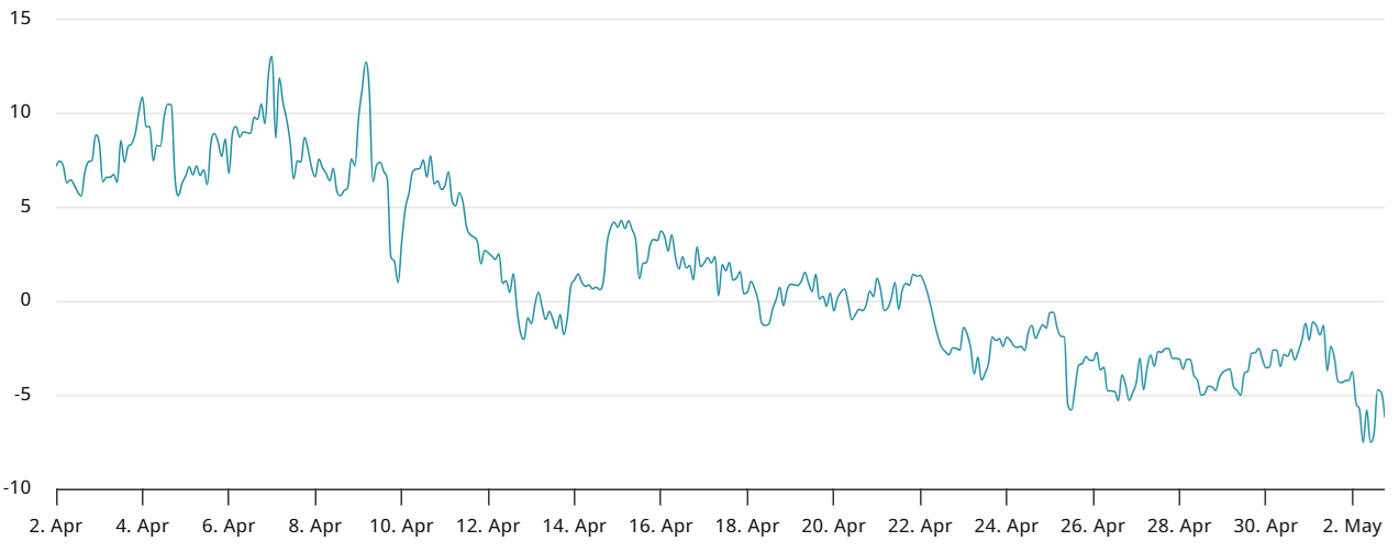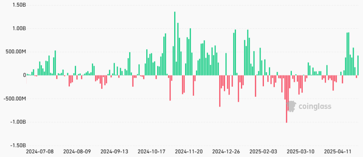 This shift suggests a drop in conviction among futures traders. While they’re not bearish, they are clearly avoiding aggressive long positions—holding back leverage despite bullish spot indicators.