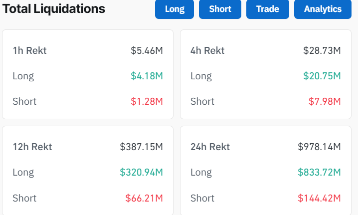 Nearly $1 Billion in Crypto Liquidations in 24 Hours