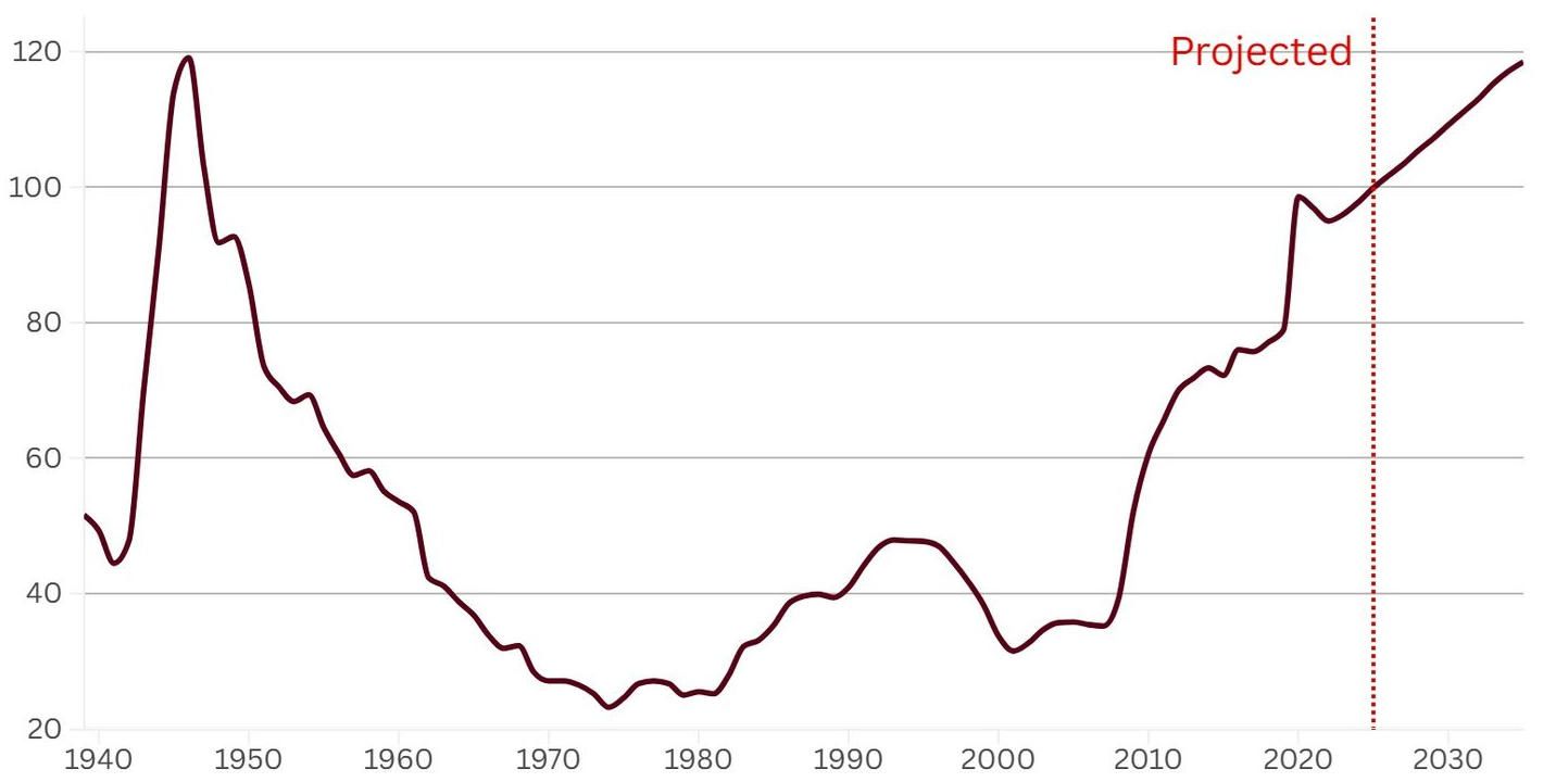 Source: The Insider — US Federal Debt as % of GDP