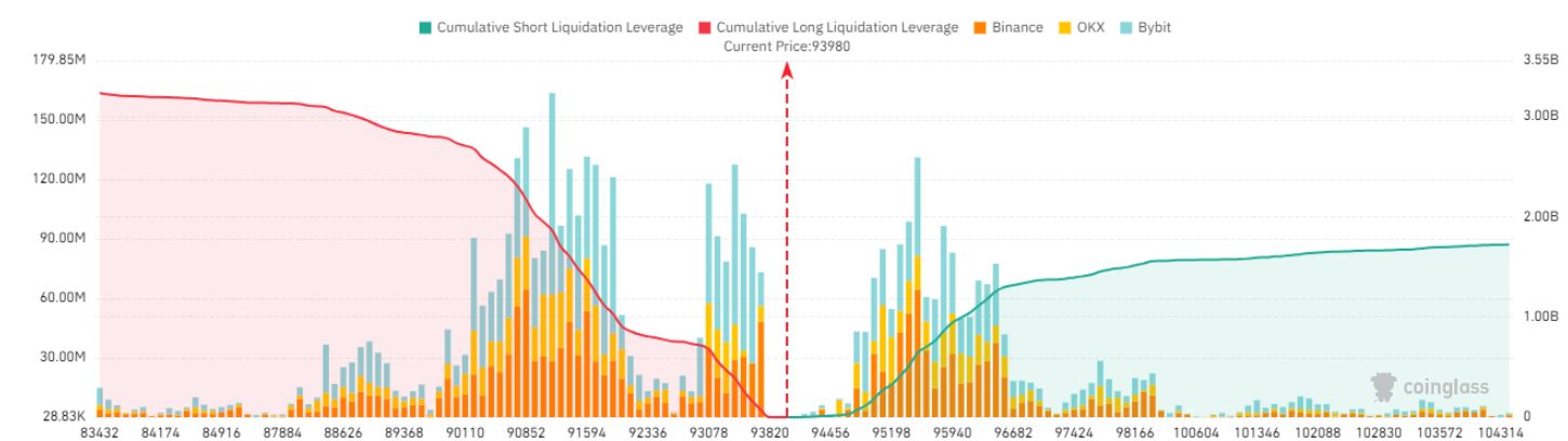 Key Resistance: Bitcoin needs to break through significant resistance levels at $95,000 and $96,400. A move above $96,400 could trigger liquidations of $1.24 billion in leveraged short positions across crypto exchanges.