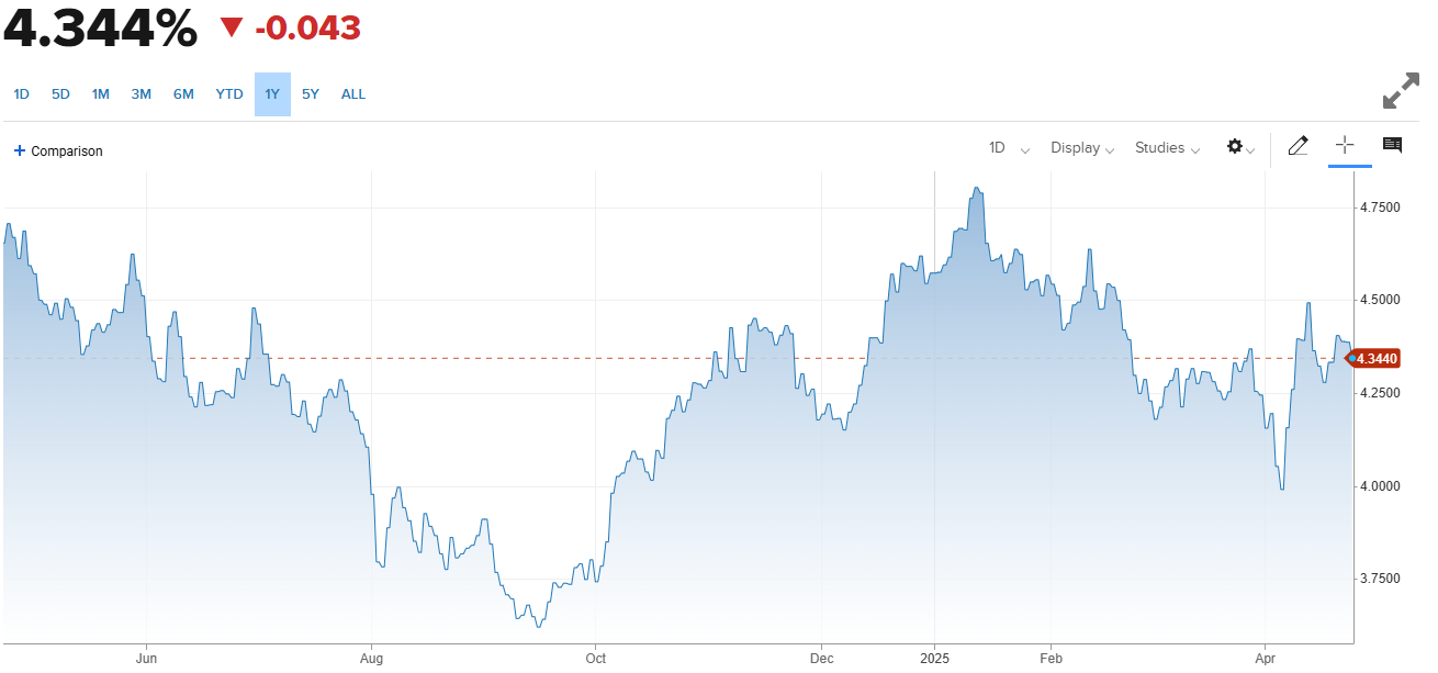 Following Trump’s short-lived tariff escalation—intended to project economic strength—the 10-year Treasury yield surged from under 4% to 4.5%, according to CNBC, revealing deep market unease over inflation and recession fears.