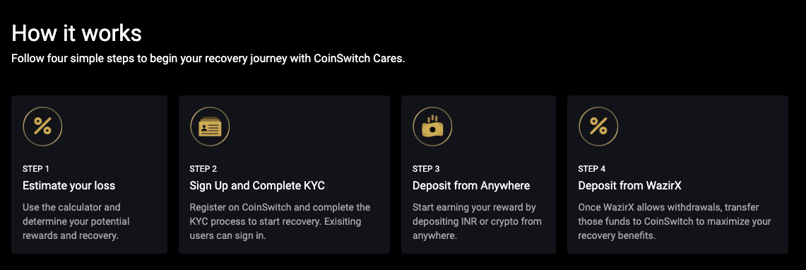 CoinSwitch Cares’ recovery process. Source: CoinSwitch