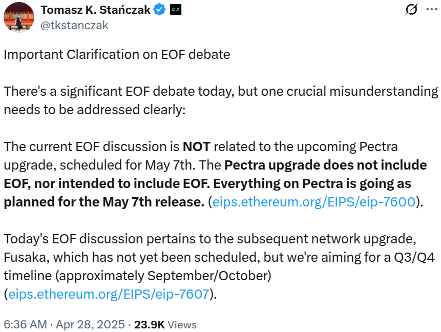 Major Ethereum Upgrade, Including the Controversial EOF, Expected in Q3–Q4 2025