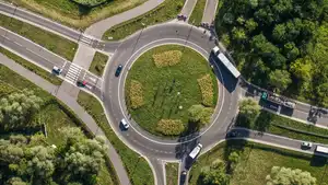 A traffic circle is a circular juncture on the road where two or more roads meet.