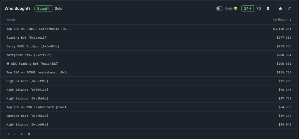 The listing triggered a trading frenzy, with TOSHI’s 24-hour trading volume soaring to $165 million. According to Nansen data, a crypto whale purchased $3.16 million worth of TOSHI tokens, further solidifying its position as a standout performer in the meme coin market.
