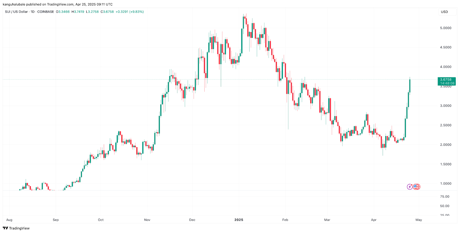 As of April 25, SUI soared to $3.67, fueled by a wave of investor optimism thanks to Grayscale’s new SUI Trust and a game-changing Mastercard partnership with xPortal and xMoney. These milestones have triggered a bullish breakout for the altcoin, sending it flying past competitors like AVAX and LINK.